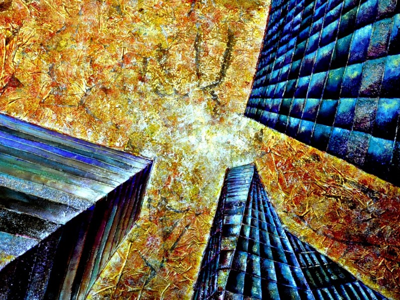 "Verticalism Gold" Cm.80 x 80 Tenica mista Anno 2012